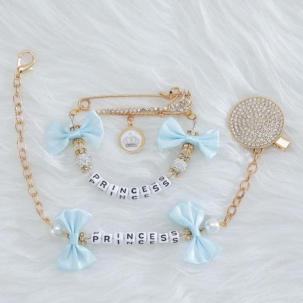 MIYOCAR n'importe quel nom Bling strass arc rose factice clip support sucette clips support et poussette chaîne poussette jouet ensemble