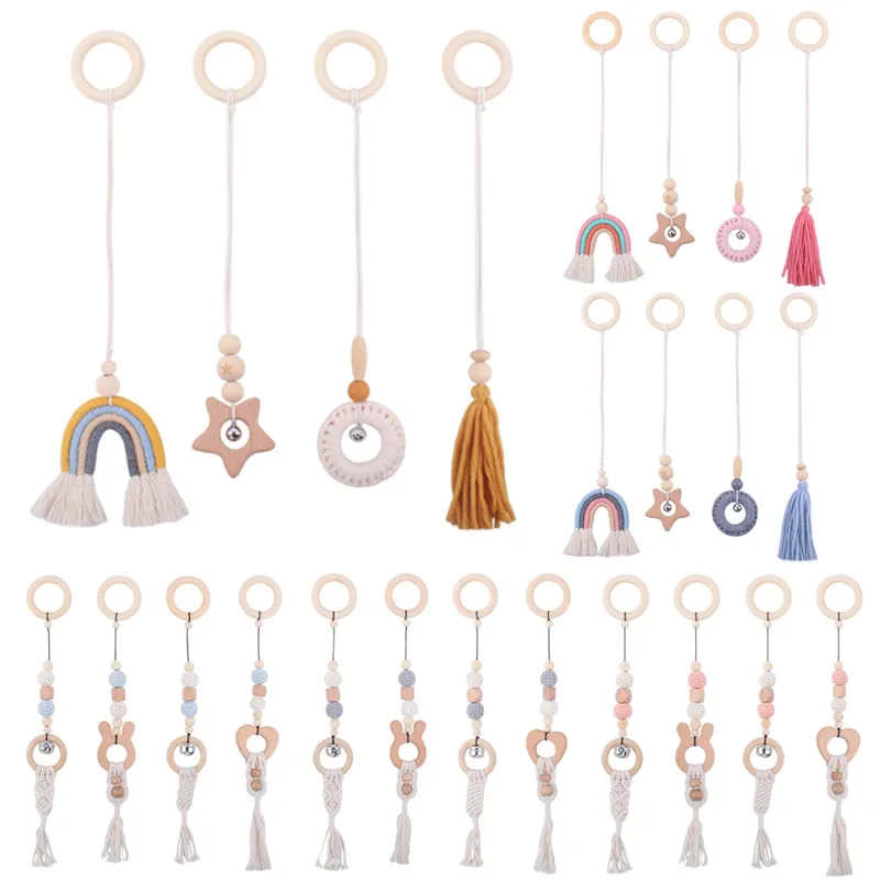 Jouets de gymnastique en bois sans BPA pour bébé, pendentifs suspendus pour poussette, nouveau-né, cadre de jeu, hochet suspendu, anneau de dentition