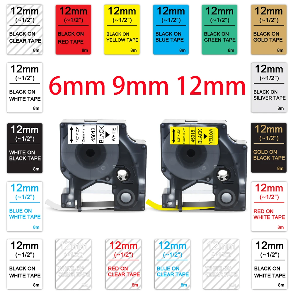 Ruban d'étiquettes pour imprimante Dymo LabelManager, 6mm, 9mm, 12mm, 45013, compatible avec D1, 45013, 45010, 45018, 40913, 43613, 45023, 45024, 160, 280