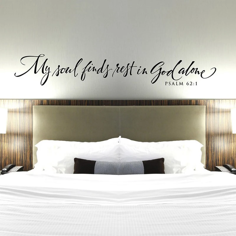 Autocollant mural chrétien en vinyle, citation de verset de la Bible, mon âme trouve repos dans dieu seul, décor mural pour chambre à coucher