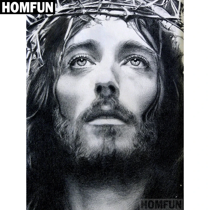 HOMFUN – peinture diamant thème "jésus religion", broderie complète 5D, perles rondes ou carrées, points de croix, à faire soi-même, décoration d'intérieur, A00694