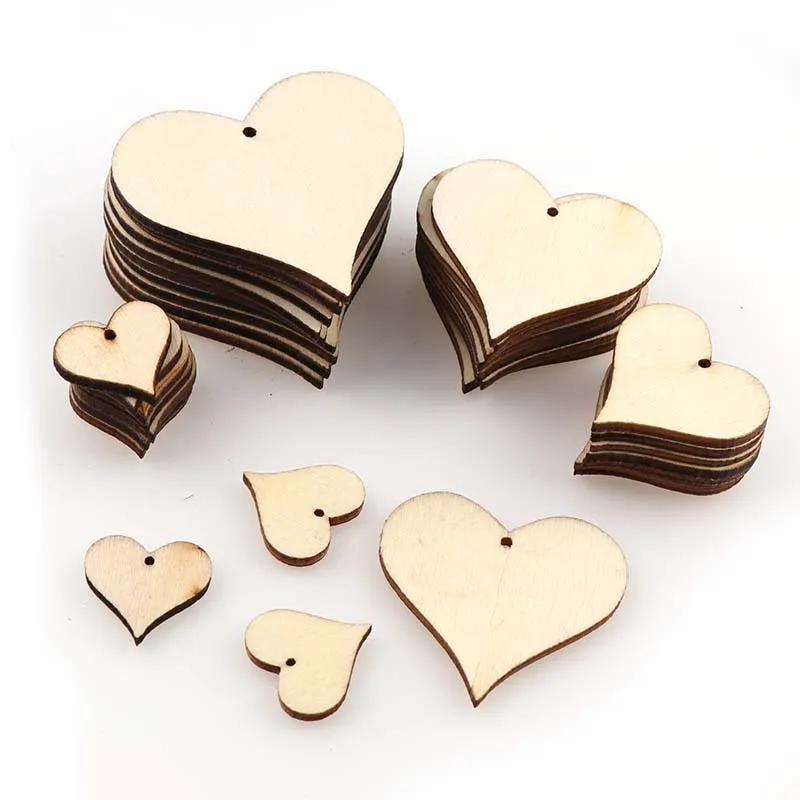 Patch cœur perforé en bois de taille mixte, bricolage, artisanat, fournitures de Scrapbooking, décoration de mariage, boutons en Graffiti faits à la main