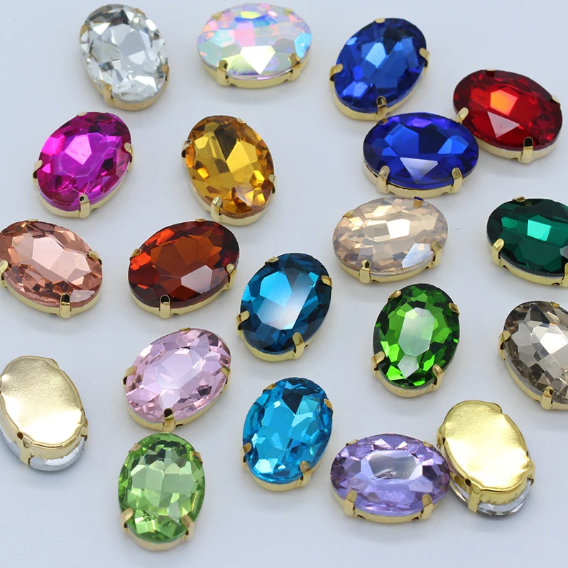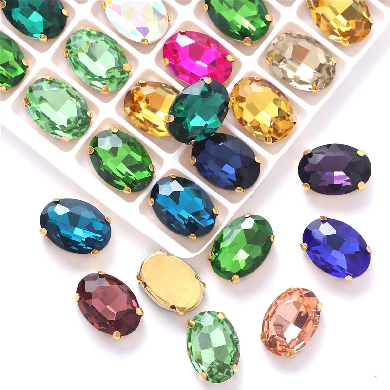 Verre de forme ovale coudre sur strass avec griffe d'or artisanat strass coudre sur pierre vêtements accessoires chaussures sac diy