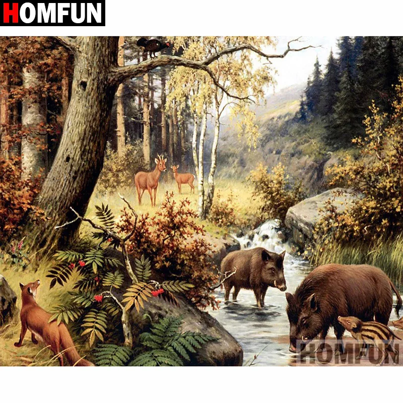 HOMFUN plein carré/rond perceuse 5D bricolage diamant peinture "Animal sanglier" 3D diamant broderie point de croix décor à la maison A20230