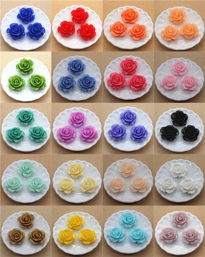 50pcs 15mm résine Rose fleurs dos plat Cabochon bijoux à bricoler soi-même/artisanat accessoires de décoration de la maison, 20 couleurs au choix