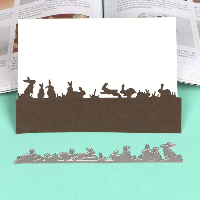 DUOFEN – matrices de découpe en métal S18082304, pochoir de gaufrage de bordure de lapins de pâques, Album, nouveauté 2018