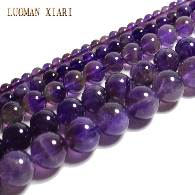 LUOMAN XIARI AAA + perles rondes en pierre d'améthyste naturelle pour la fabrication de bijoux bracelet à bricoler soi-même collier bracelet de cheville 4/6/8/10/12mm brin 15''