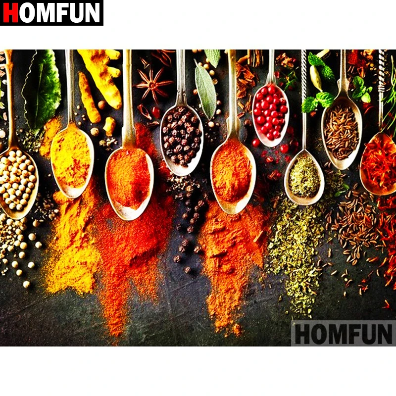 HOMFUN – peinture diamant thème "assaisonnement de cuisine", broderie complète 5D, image en strass, à faire soi-même, pour cadeaux de Festival, A19282