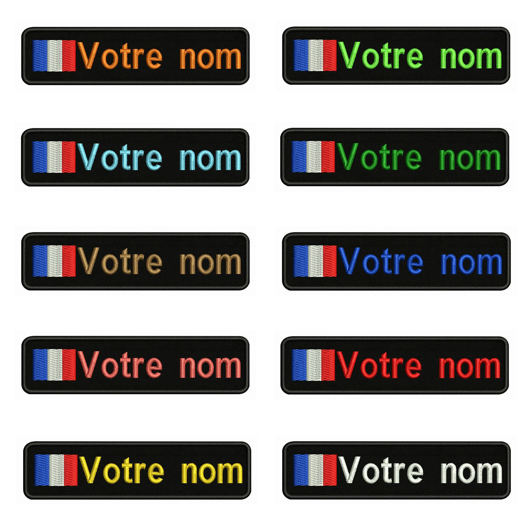 Drapeau de la France 10x2,5 cm broderie nom personnalisé texte Patch rayures Badge à repasser ou à coudre ou à des patchs