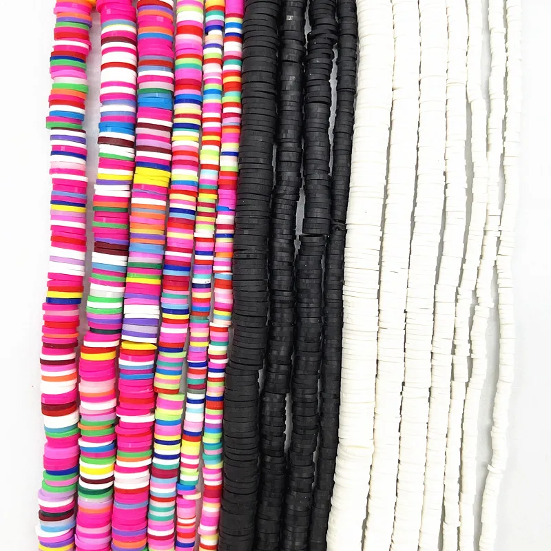 Nouveau 3/4/5/6/8/10mm couleur blanche et noire, perles rondes plates en argile polymère pour filles, fabrication de bracelets, accessoires de collier Diy
