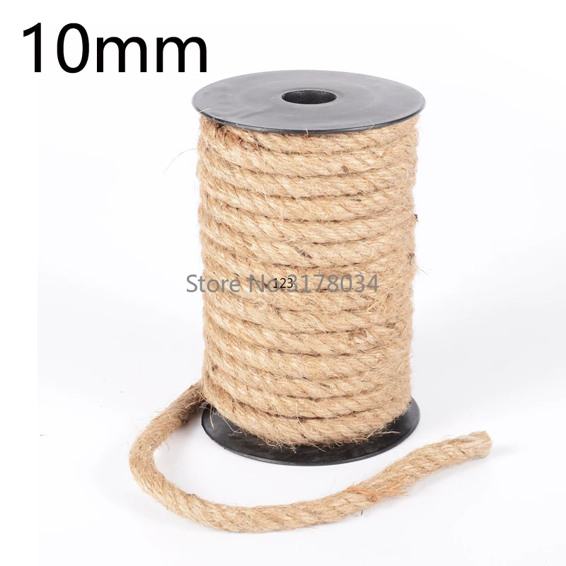 Corde de Jute naturelle 10mm 1m-100m, ficelle robuste, cordon torsadé en chanvre, corde en macramé, bricolage artisanal, décoration de mariage et de maison