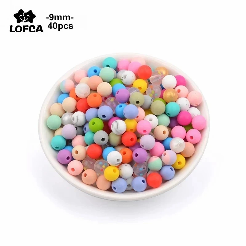 LOFCA 9mm 40 pcs/lot perles rondes en Silicone en vrac pour collier en Silicone bricolage collier de dentition en Silicone perles en Silicone sans BPA