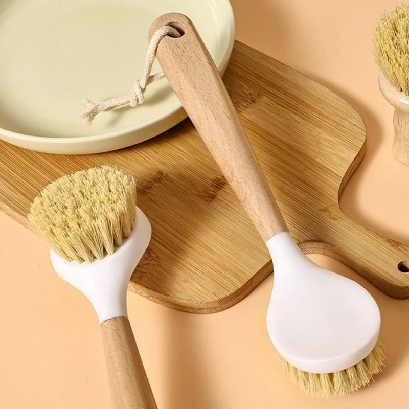 Brosse Ă vaisselle en fonte avec manche en bois naturel, brosse Ă livres de cuisine, poĂŞle Ă frire