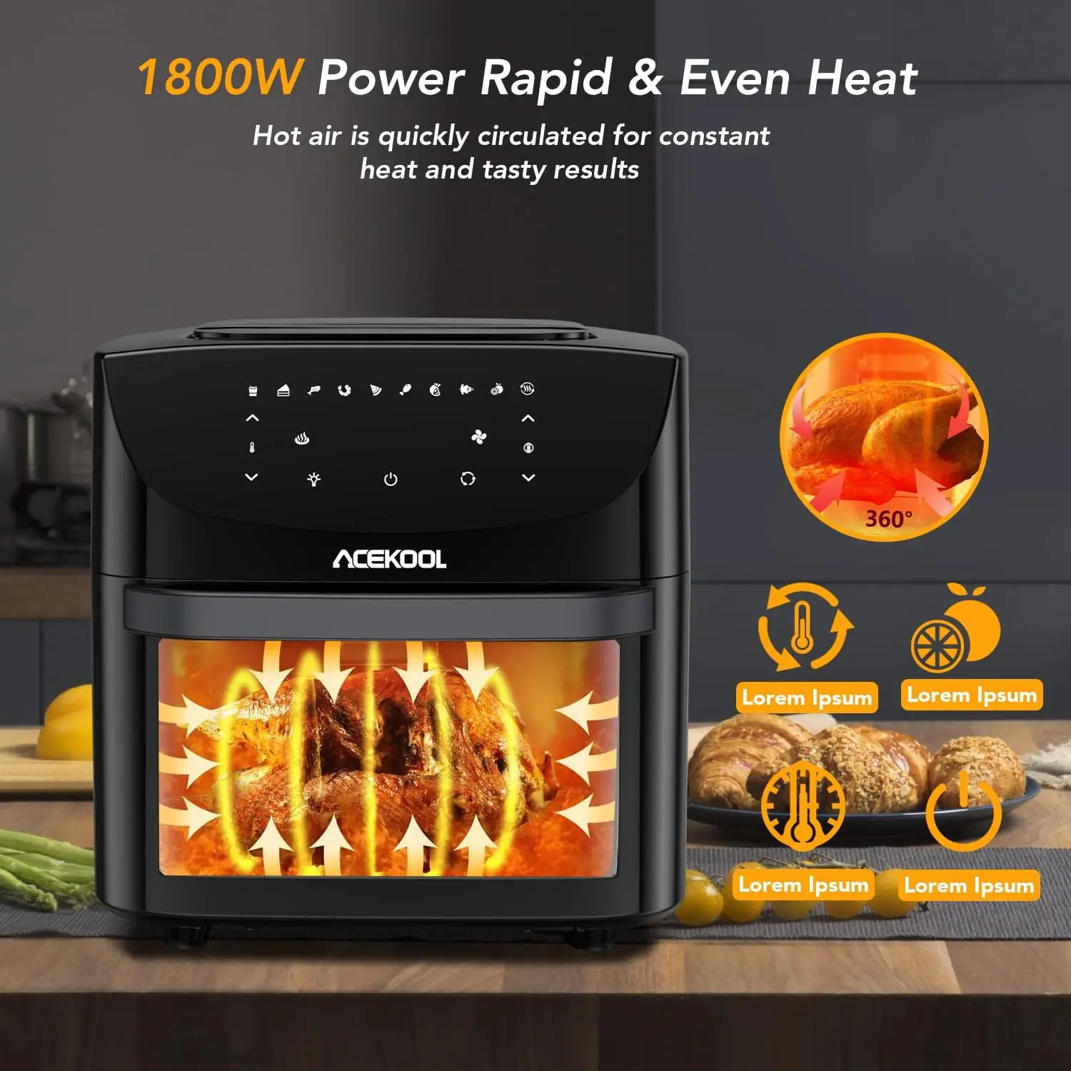 Four à friture sans huile 18L, 1500W, four à convection de comptoir 8-en-1, friture, cuisson, rôtissage, grillade, déshydratation, multicuiseur numérique sans huile