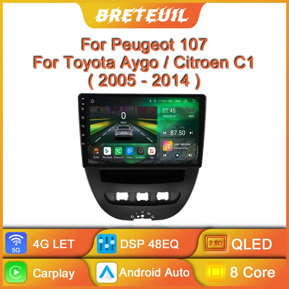 Autoradio Android avec Navigation GPS et Écran Tactile, Lecteur de Limitation CarPlay, pour KIT 107 Toyota Aygo Cristaux en C1 2005 2006 2007 2008 2009 2010 2011 2012 2013 2014