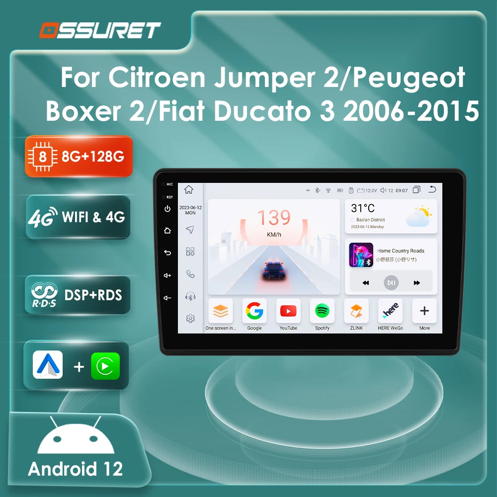 Autoradio Carplay Android 12 9 "6115, pour Fiat Ducato 3/citroën Jumper 2/Peugeot Boxer 2, lecteur vidéo multimédia, écran 4G 2din
