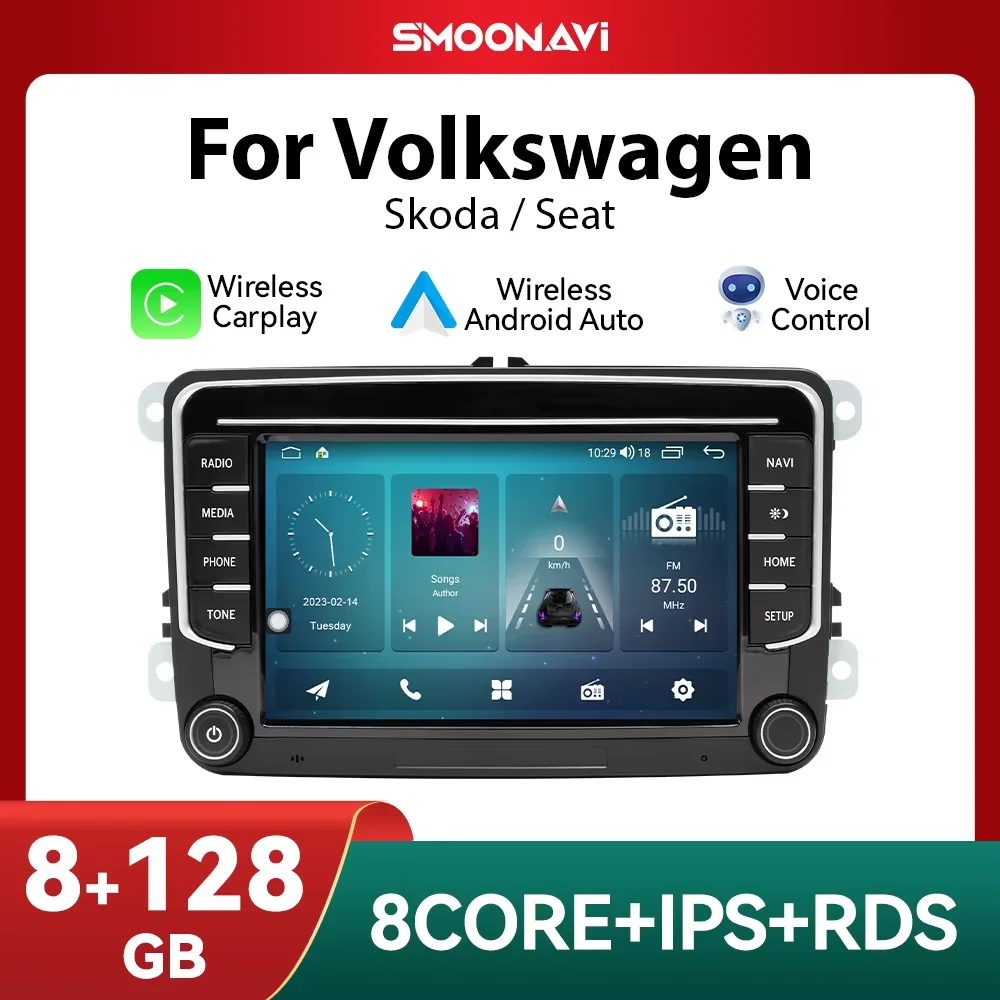 Autoradio sans fil Carplay Android12, 8 go 128 go, pour VW/Volkswagen/Golf/Passat/b7/b6/Skoda/Seat/Octavia/Polo/Tiguan GPS DSP