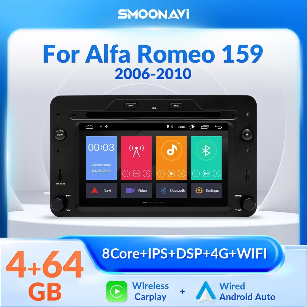 Lecteur DVD de voiture sans fil AI Voice, Carplay, Android 12, Radio, 4G, Wifi, Navigation GPS, Au revoir, Romeo, Spider, Brera, 159, Sportwagon, 2006
