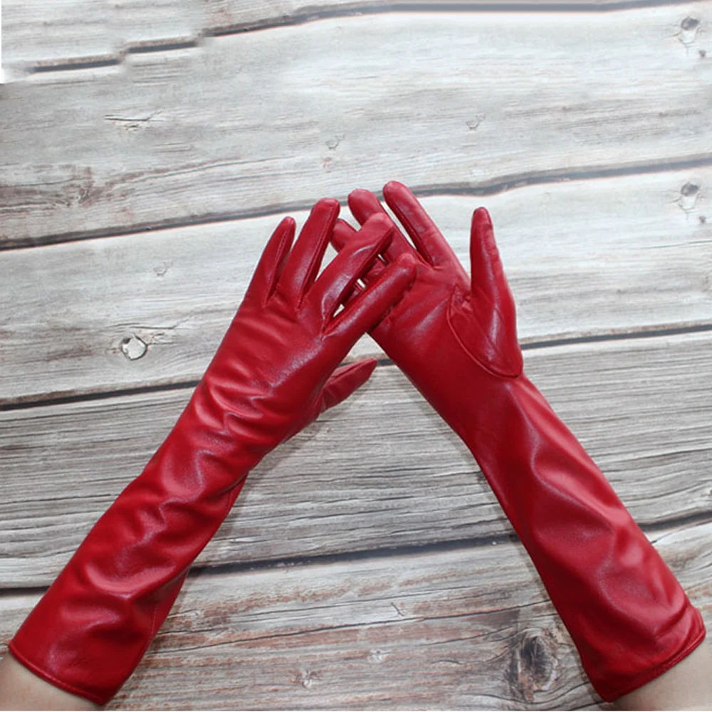 Gants longs en cuir pour femmes, style droit, peau de mouton, doublure en velours, chauds, couleur, automne, hiver, nouveau