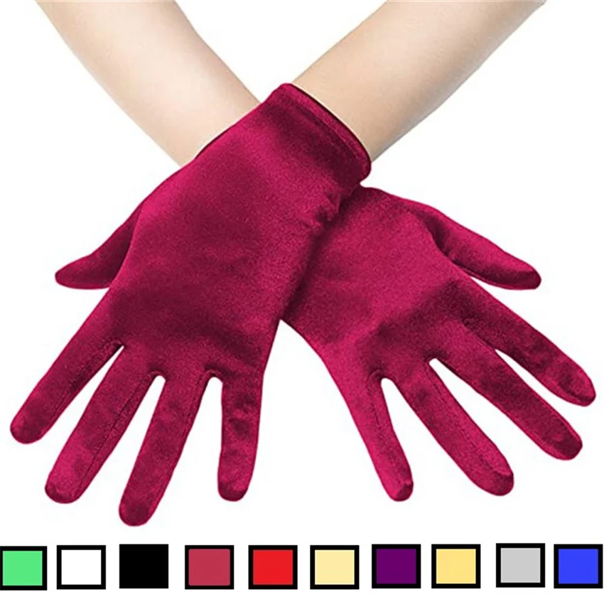 Gants de mariage courts en Satin lisse pour femmes, couleur Ding, étiquette, décoration de spectacle de fête, robes assorties, mitaines élégantes, Nv2