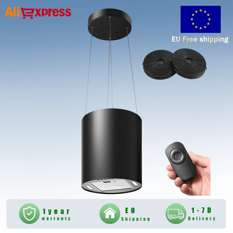 Hotte de cuisine île 35cm 700m3/h Extraction puissante avec filtre à charbon télécommande 3 niveaux de vitesse lumière LED Ultra silencieuse 55dB