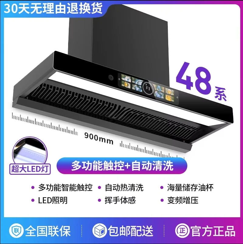 Grande hotte de cuisine domestique à aspiration, nettoyage automatique, face supérieure en forme de 7, Double hotte sensible au toucher, vent 580Pa