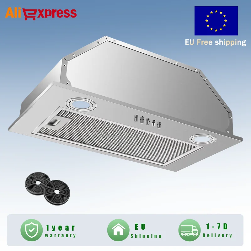 Hotte de cuisine intégrée en acier inoxydable, 52cm, 300m3/h, avec filtre en carbone, éclairage LED, 3 vitesses réglables, hotte d'échappement Convertible