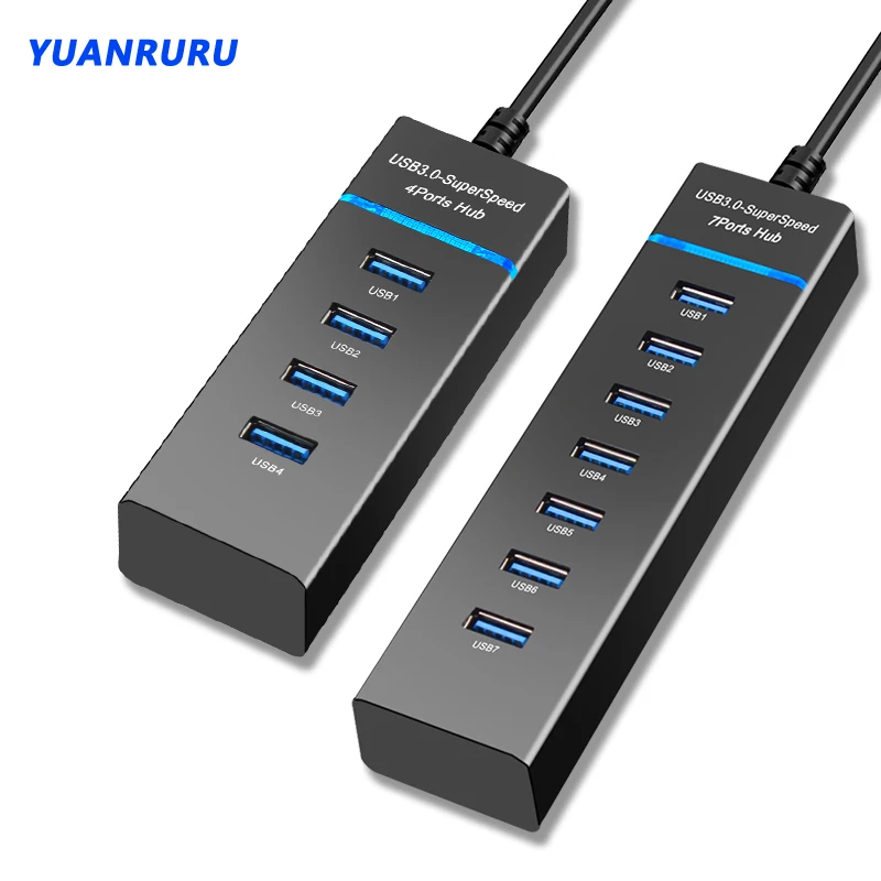 Extenseur multiple USB 3.0 airies, répartiteur avec interrupteur, adaptateur secteur pour PC, accessoires informatiques, 4 ports, 7 ports, 3.0