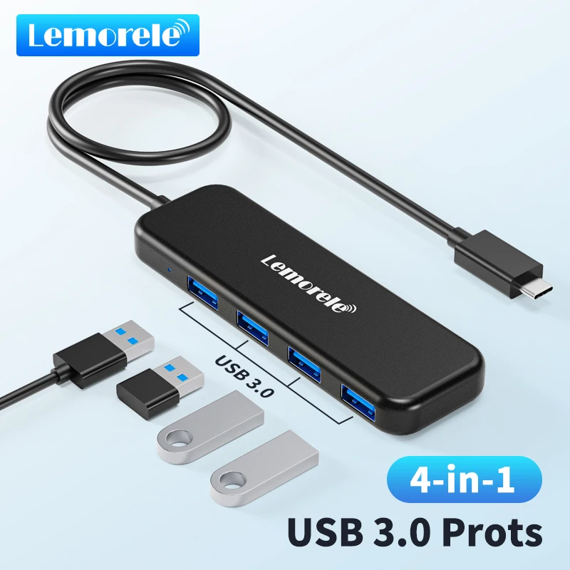 Lemorele-airies USB 3.0 haute vitesse pour ordinateur portable Windows et Mac, 4 en 1, adaptateur de type C, 4 ports, hub USB C, 3.0
