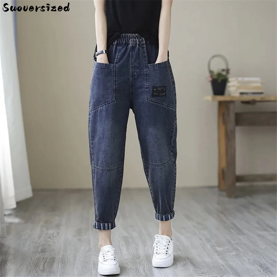 Jeans baggy taille haute vintage pour femmes, pantalons de jogging décontractés, pantalons en denim à jambes larges, pantacourts coréens