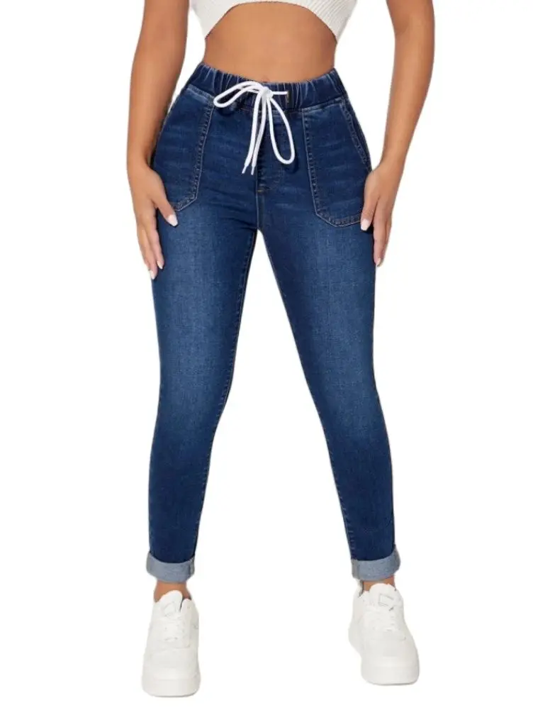 Jean taille élastique longueur cheville pour femme, pantalon crayon, extensible, mode, cordon de serrage, slim, nouvelle collection automne 2023, S-2XL