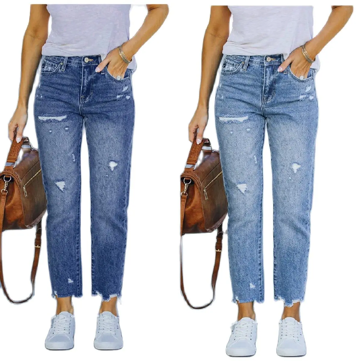 Jean déchiré à taille moyenne pour femme, pantalon crayon en Denim, Slim, extensible, décontracté, streetwear, à la mode, nouvelle collection automne 2022, S-2XL
