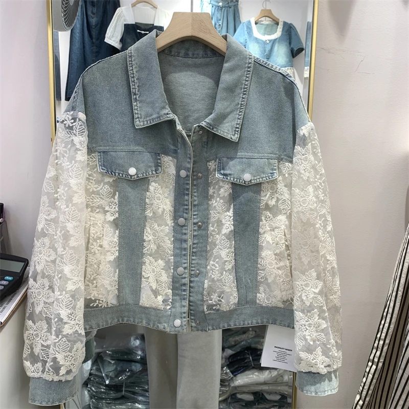 Nouvelle Veste en Jean Sexy pour Femme, Style Streetwear, Broderie, Dentelle, Patchwork, Effet Délavé, Franges, Coupe Ample, Style Coréen, Collection Été 2026