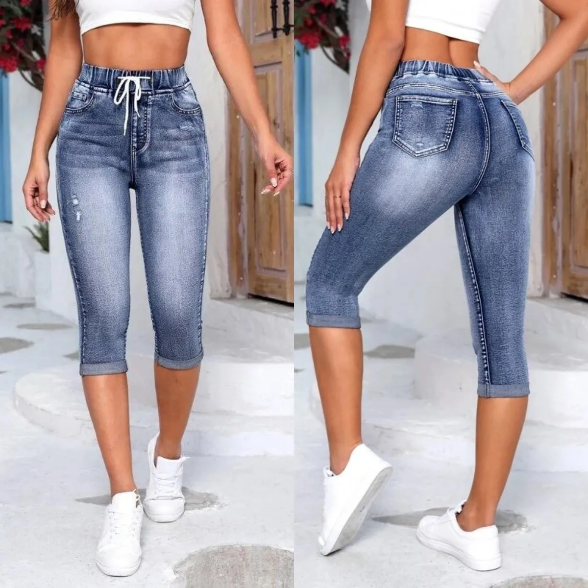 Nouveau jean déchiré taille haute longueur mollet pour femme 2026 – Jean crayon en denim extensible à taille élastique, coupe skinny décontractée