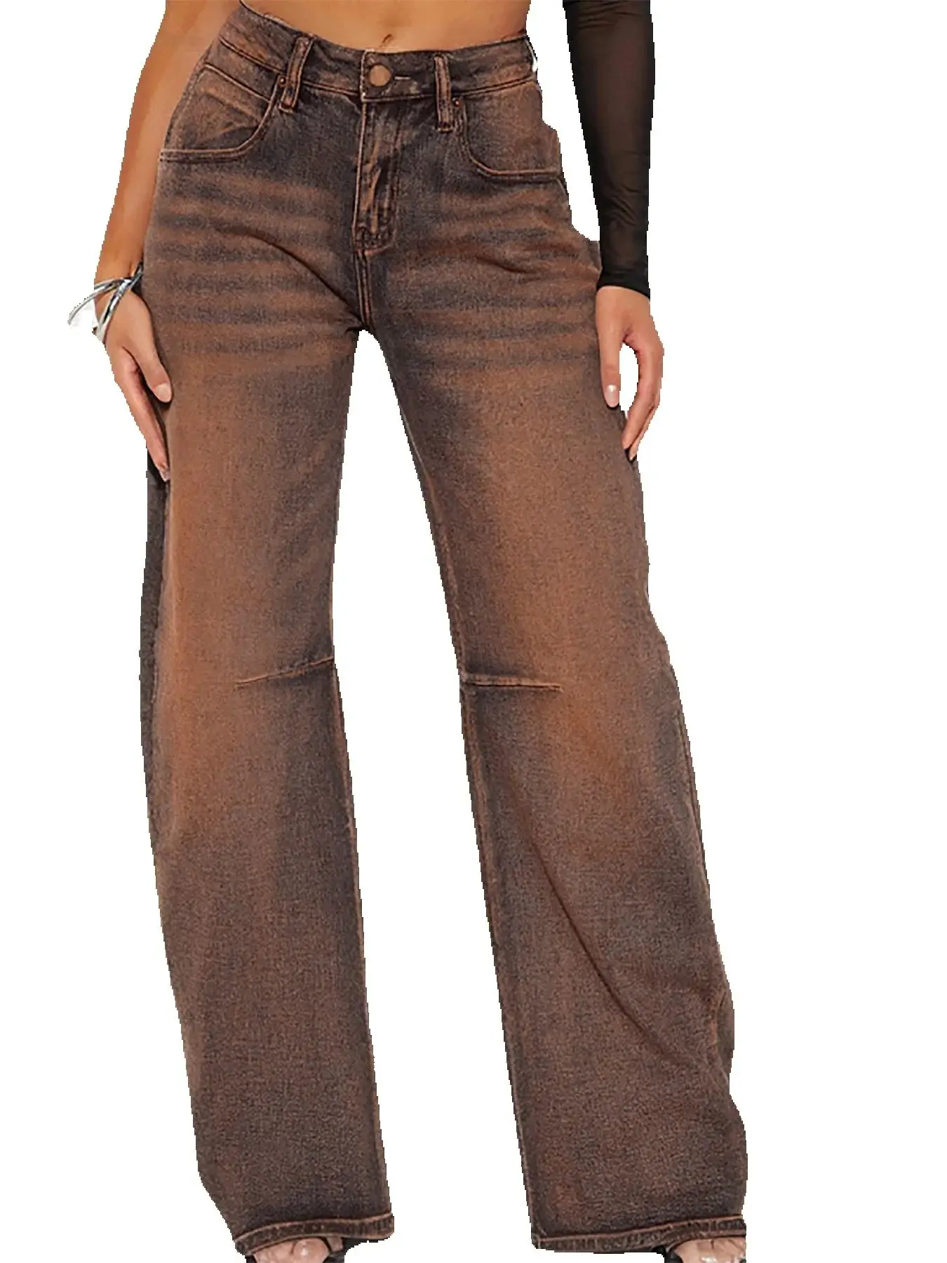 Jean de Style Y2K Marron pour Femme, Pantalon Droit en Denim, Ă la Mode, de Rue, Nouvelle Collection 2025