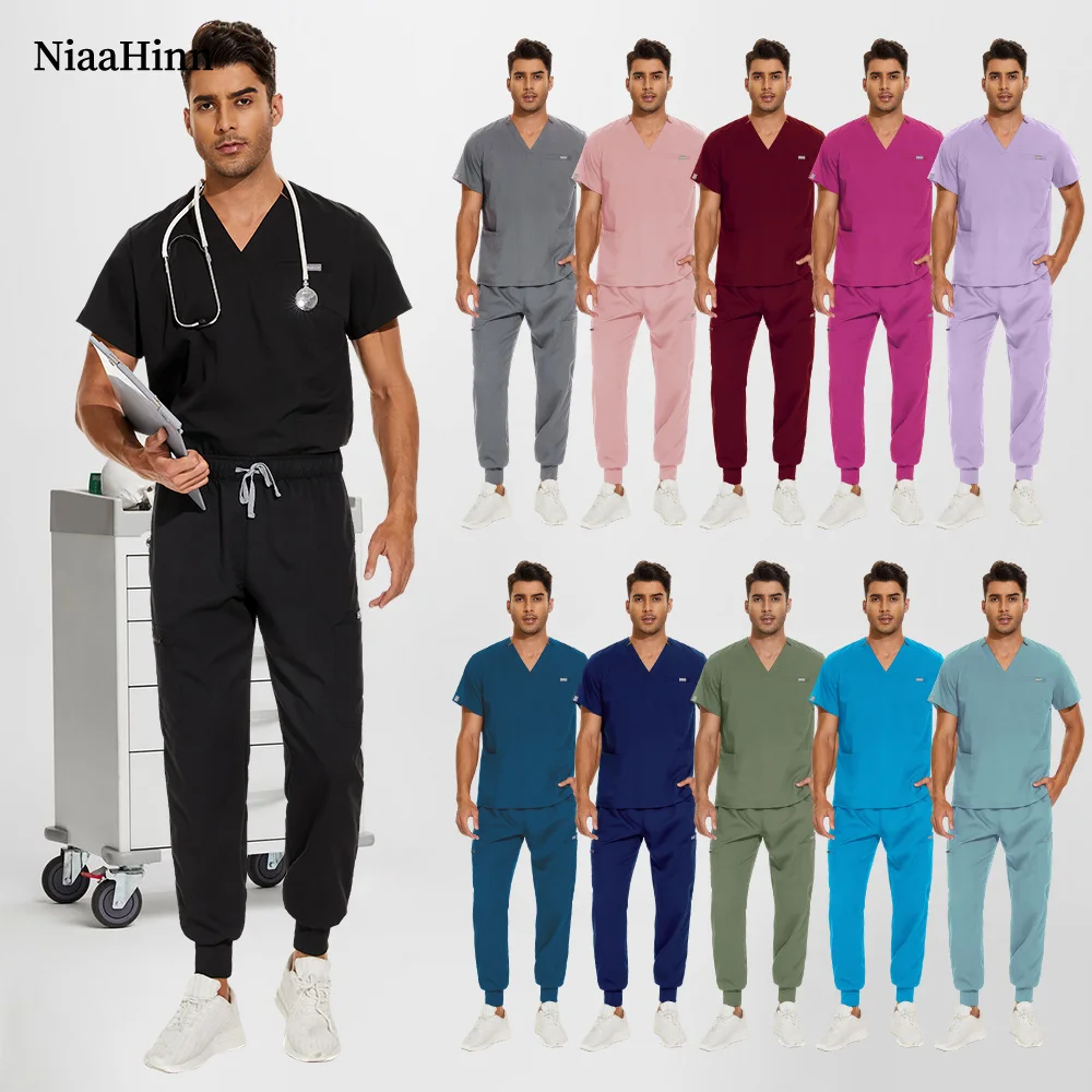 Niaahinn hôpital médecin ensemble de soins infirmiers unisexe vente en gros costumes décontractés à manches courtes col en v hauts pantalons de jogging uniformes de travail de pharmacie