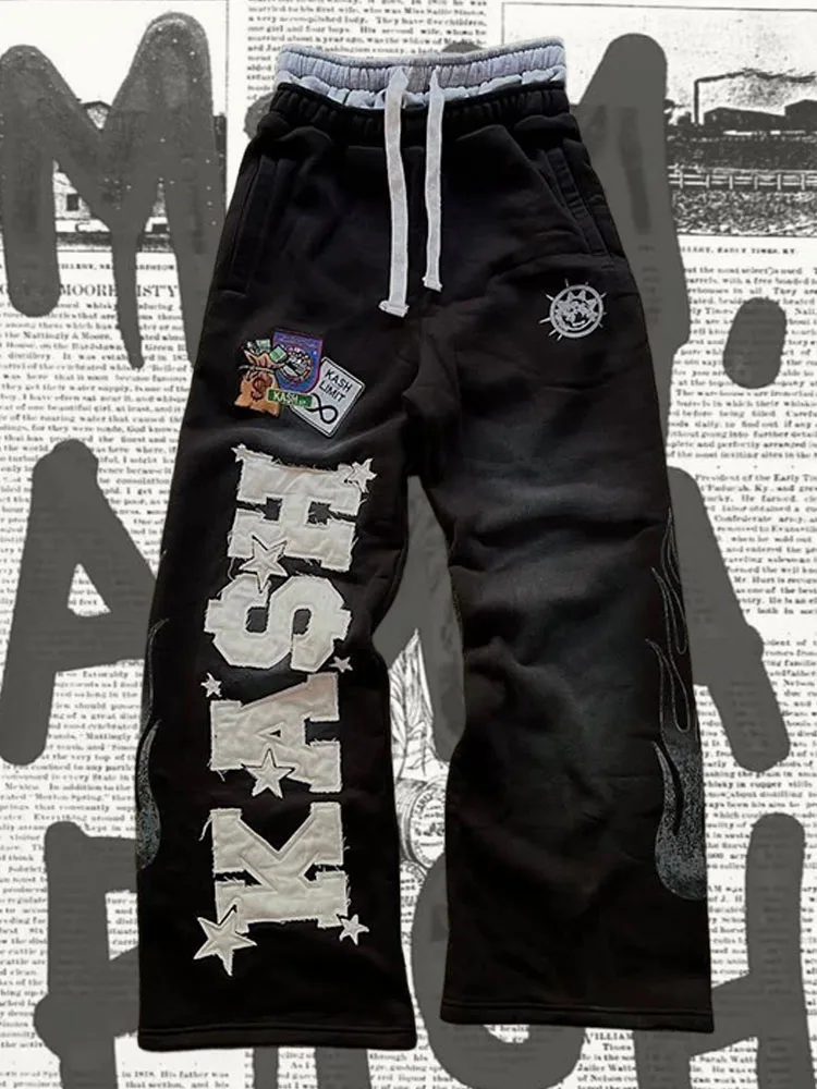 Y2K Nouveau Double Taille Design Pantalon De Sport Unisexe Harajuku Rétro Style Lettre Motif Broderie Gothique Jambe Droite Pantalon Décontracté