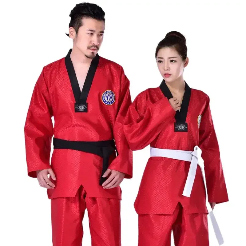 Uniforme de Taekwondo rouge bleu Costume d'Entraîneur Adulte Karaté Judo Entraînement Compétition Pantalon Manteau Unisexe Disponible Enfants Adultes karaté