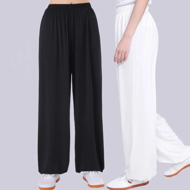 Pantalon ample en soie glacée pour la pratique des arts martiaux, vêtements de chapelle Tai, pantalon d'exercice du matin, bloomer d'été, grande taille, unisexe