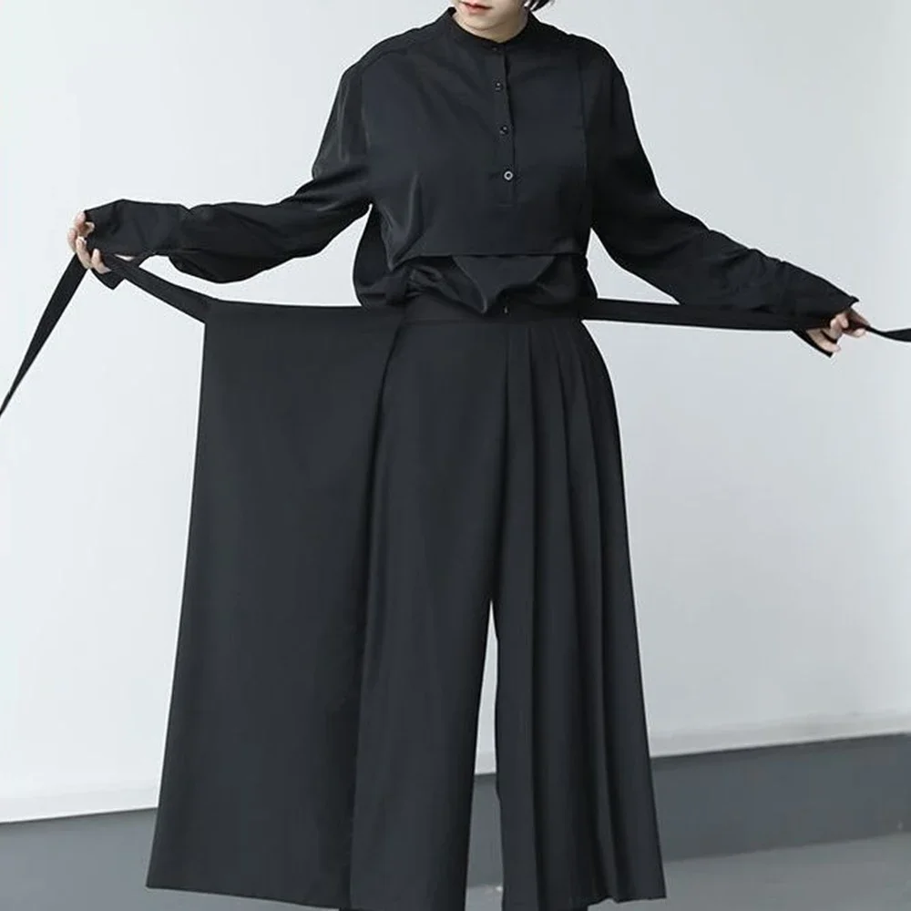 Jupe-culotte gothique Y2K monocouche épaisse japonaise, Style foncé, Streetwear drapé, personnalité, pantalon décontracté assorti avec tout, unisexe, 2024