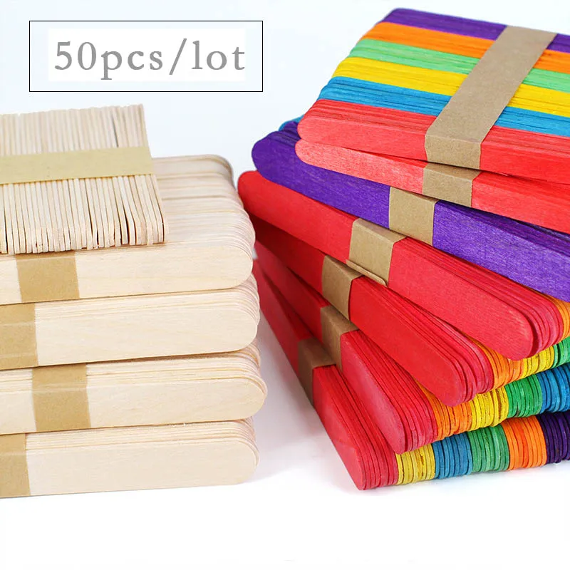 Bâtons de glace en bois naturel, 50 pièces, bâtons de crème glacée, puzzle créatif pour enfants, bricolage artisanat, blocs de construction, accessoires
