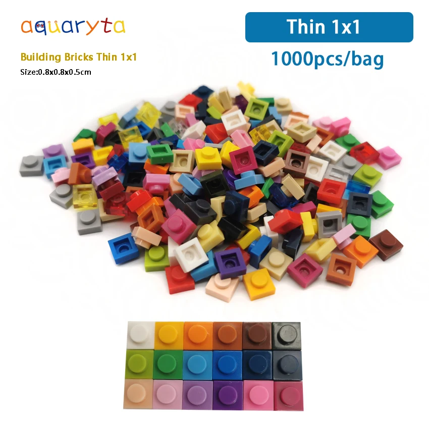 Aquaryta 1000 pièces briques de Construction mince 1X1 en vrac Compatible avec Logo 3024 Assemblage éducatif Construction jouets cadeau pour les enfants
