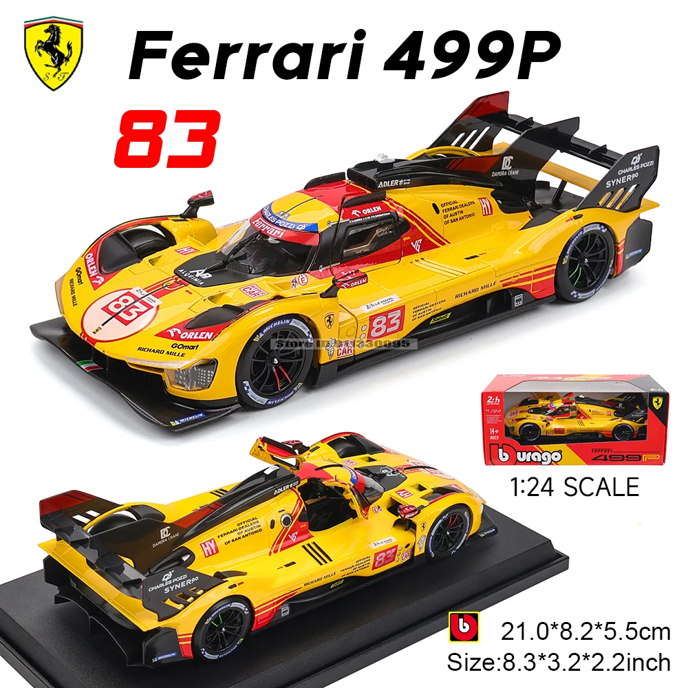 Bburago 1:24 2024 Ferrari 499P formule course 488 250GTO FXXK 458 alliage véhicule de luxe moulé sous pression voitures modèle jouet Collection cadeau