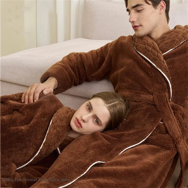Automne hiver Double face corail polaire hommes longue Robe Couple Kimono peignoir Robe vêtements de nuit surdimensionné flanelle Homewear vêtements de détente