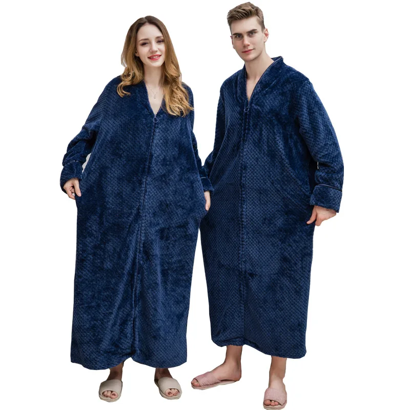 Peignoir en velours à glissière pour hommes et femmes, chemise de nuit optique, vêtements de nuit chauds en glouton, peignoir extra long, grande taille, automne, hiver