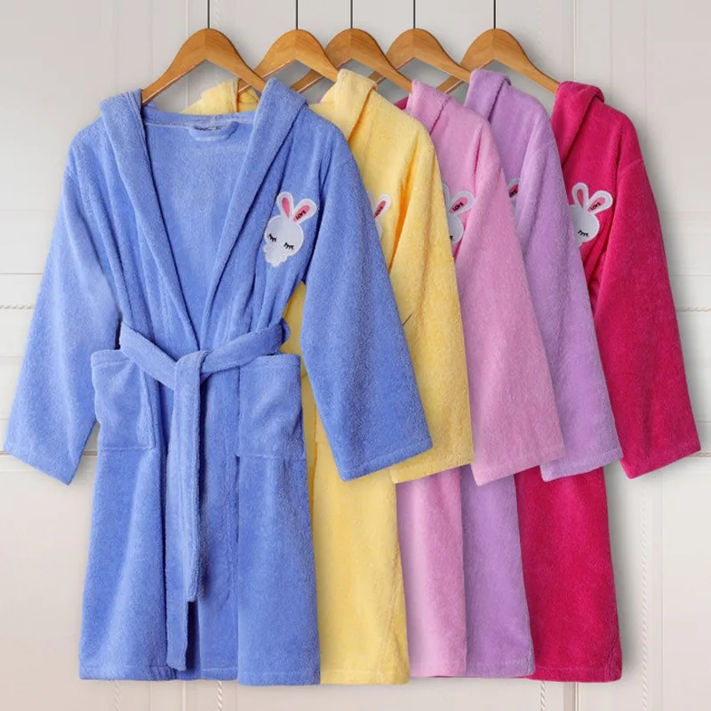 Robe de bain en éponge 100% coton pour enfants, motif dessin animé, vêtements de nuit, serviette solide, longue, Kimono