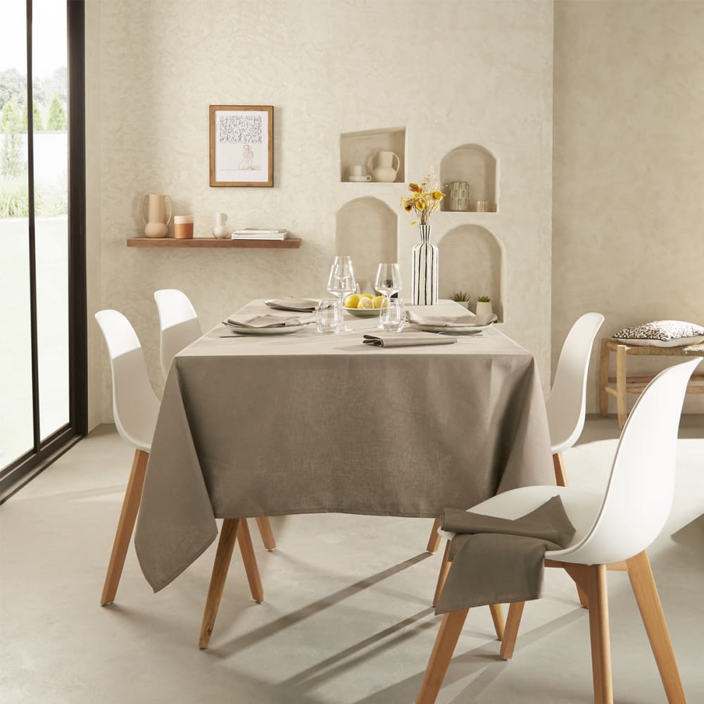Nappe en coton traitee teflon sable 180 x 300