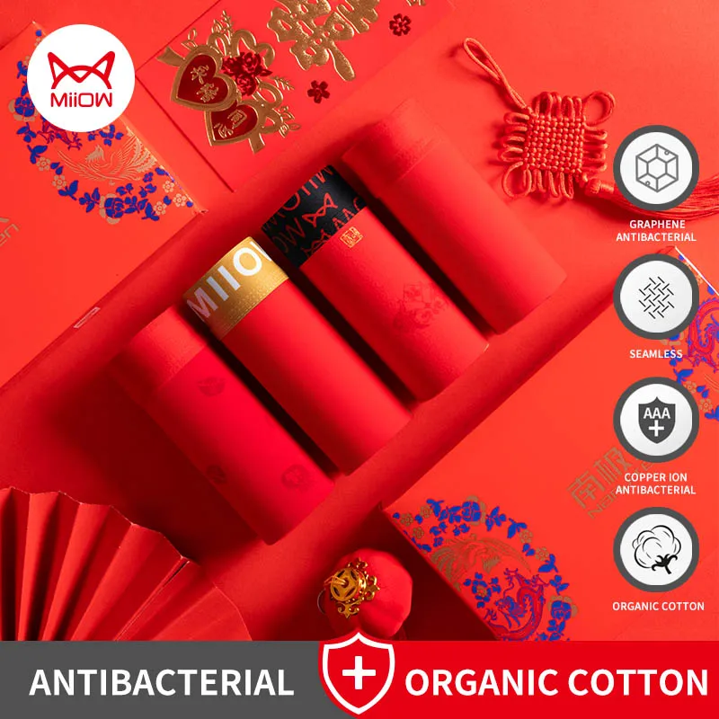MiiOW Boxer chaussettes ensemble coton biologique hommes sous-vêtements Boxer troncs respirant mâle culottes Boxershorts caleçons nouvel an rouge