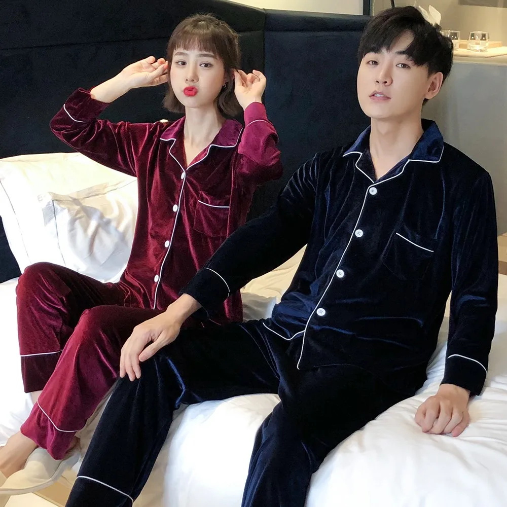 Pyjama en velours pour homme, ensemble 2 pièces, chemise et pantalon, en velours, grande taille 3xl, 4xl et 5xl, vêtements de nuit pour Couple, automne et hiver