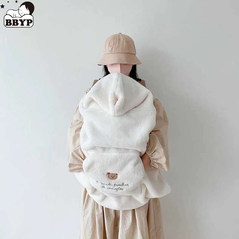 Couverture de transport en fourrure brodée pour bébé, ours souriant mignon, couverture chaude pour bébé Electrolux, housse de poussette chaude, vêtements pour tout-petits, hiver